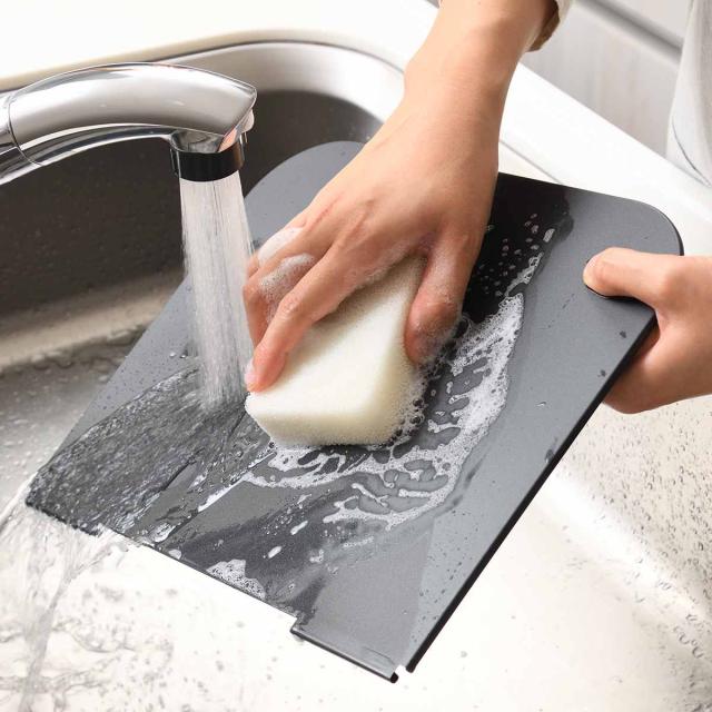 使わないときは、折りたたんでコンロ脇の壁に立てかけたり、シンク下のすき間に収納できるので場所を取りません。