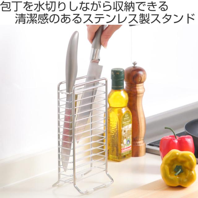 包丁スタンド 水切り用 &kit スリム包丁スタンド 水切りかご ( 包丁立て ナイフスタンド 包丁ケース 包丁収納 水切り ステンレス 水切りラック用パーツ 洗い物 乾燥 コンパクト コンロ横 シンク横 包丁 収納 食洗機対応 )