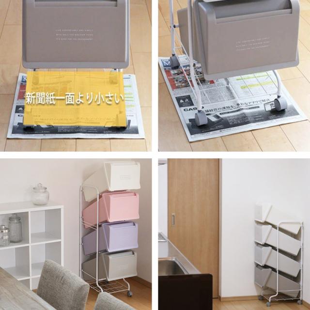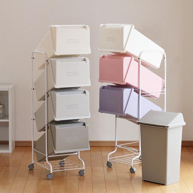 縦のスペースを有効活用できるワゴン付き4分別ゴミ箱