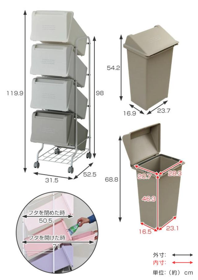 | 内容量 | 各21L×4 付属品:ワゴン1台、分別シール |