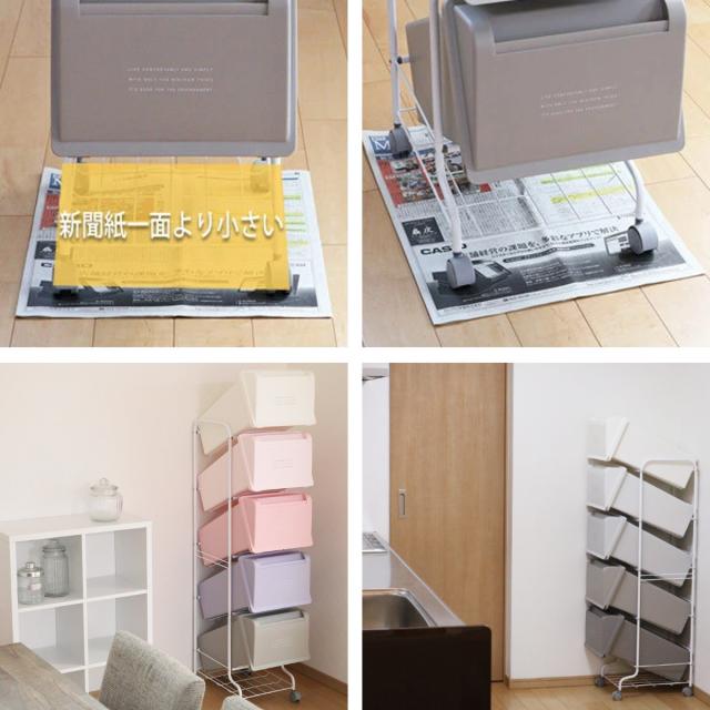 ゴミ箱を縦に並べることで省スペースでも使いやすい、ワゴン付きの分別式ゴミ箱です。ワゴン付きなので移動がしやすく、それぞれカラーの違う5色のゴミ箱がセットになっているので、ゴミの分別の目安にもなります。