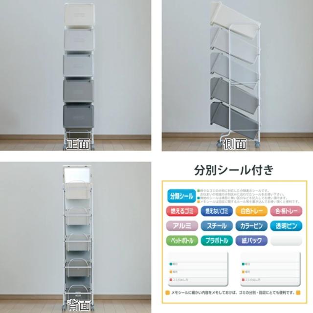 縦のスペースを有効活用できるワゴン付き5分別ゴミ箱