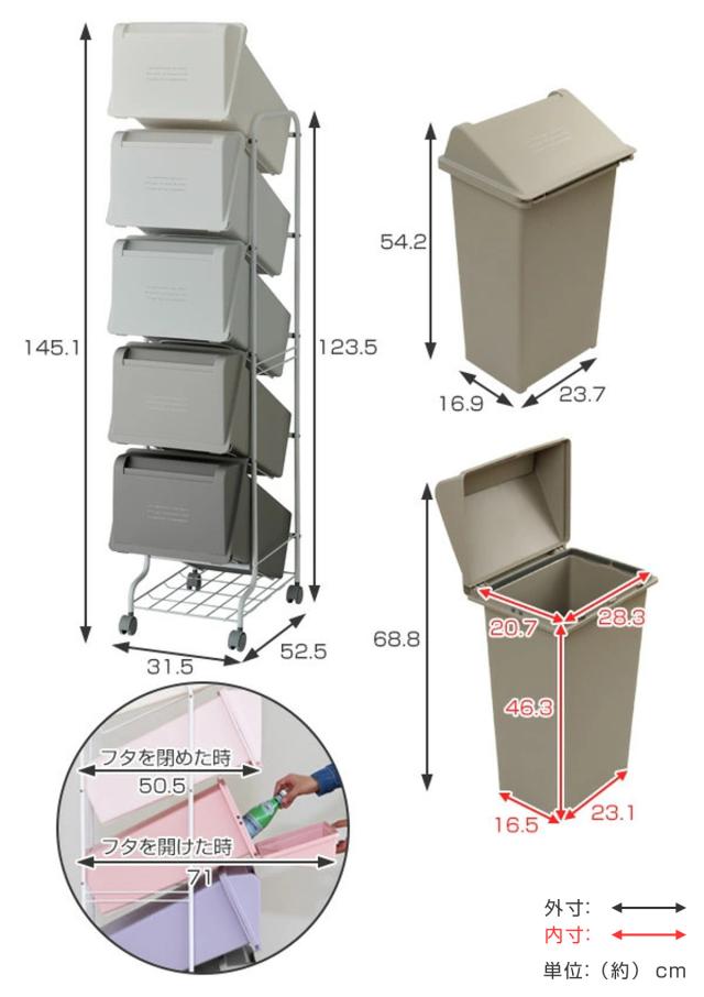 | 内容量 | 各21L×5 付属品:ワゴン1台、分別シール |