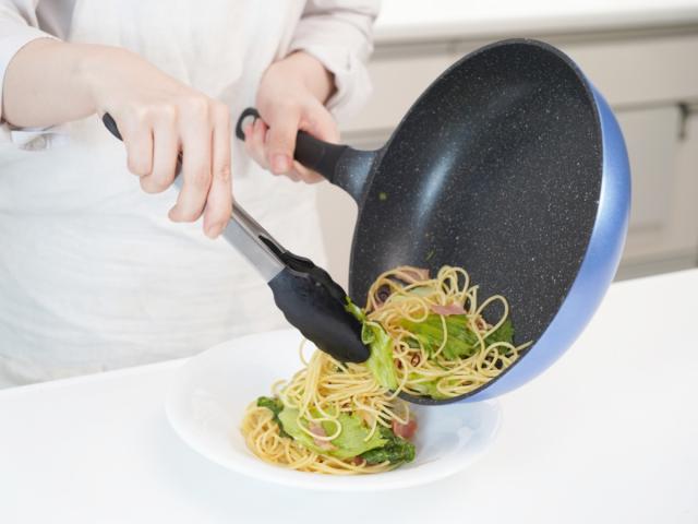 調理時もお手入れの際も、扱いやすい軽量タイプのフライパンです。約430gととっても軽いので片手でも楽に持ち上げることができ、調理の負担になりにくく扱いやすいです。