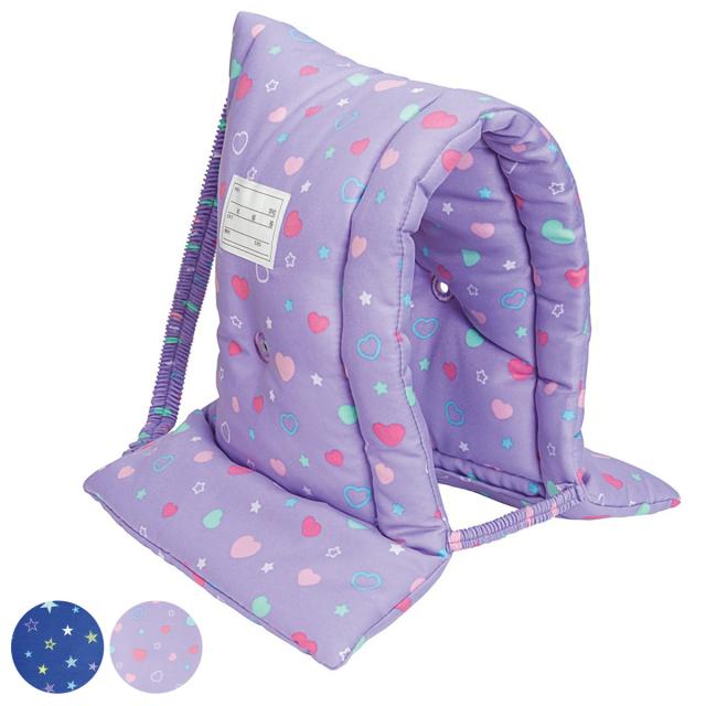 別売りの収納袋に入れると、防災頭巾のカバーとしてはもちろん、背もたれやクッションとしてお使いいただけます。学校などの限られた収納場所しかない場合に便利なアイテムです。