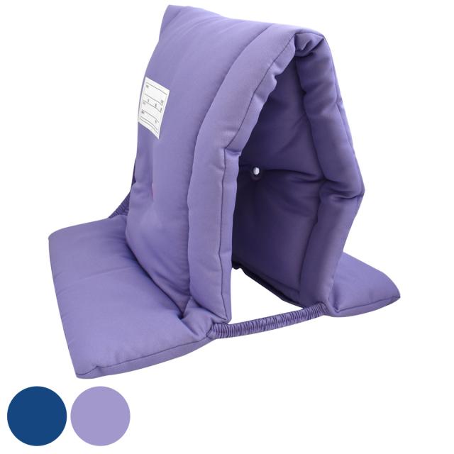 別売りの収納袋に入れると、防災頭巾のカバーとしてはもちろん、背もたれやクッションとしてお使いいただけます。学校などの限られた収納場所しかない場合に便利なアイテムです。