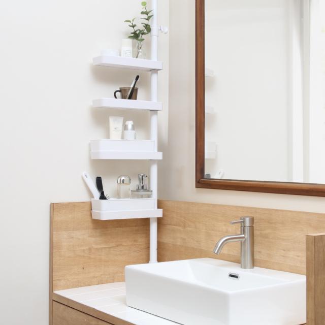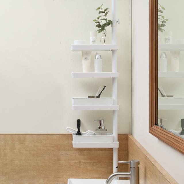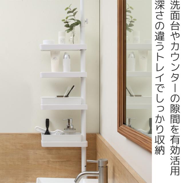 突っ張り スリムラック 洗面台上 高さ120〜200cm ( 突っ張りラック スリム ラック 収納 突っ張り棒 つっぱり ホワイト すき間収納 隙間 つっぱり棚 洗面台 キッチン トイレ 玄関 出窓 深型トレイ 突っ張り棚 )