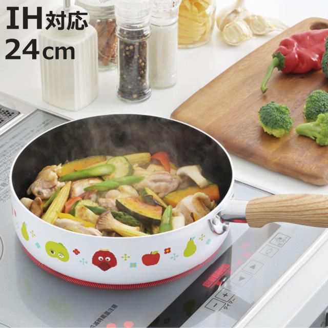 フライパン 24cm IH対応 ガチャピン・ムック ( ガス火対応 オール熱源対応 片手鍋 炒め鍋 深型 24センチ アルミ製 アルミフライパン フッ素加工 煮込み料理 フライパン ih対応)