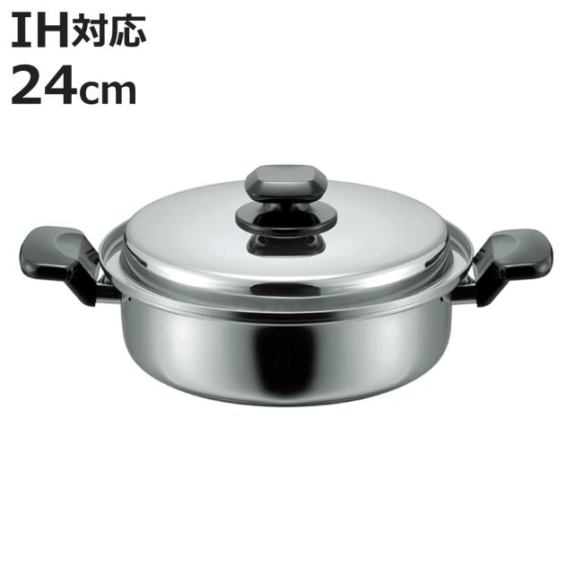 両手鍋 24cm IH対応 ヘルシークック 日本製 圧力調理 ( ガス火対応 両手なべ 鍋 なべ ステンレス鍋 浅型 蓋付き 無水調理 24センチ 卓上鍋 フタ付き ステンレス製両手鍋 吹きこぼれ 防止 調理器具 キッチン用品 おすすめ )