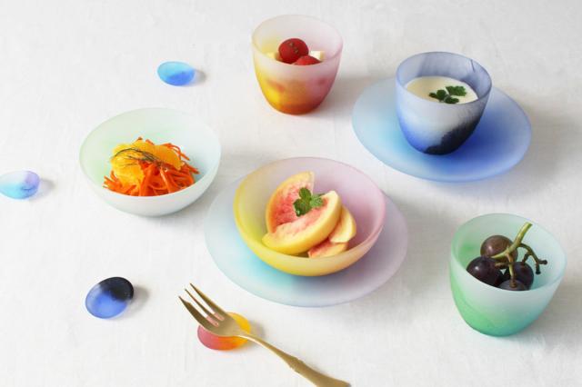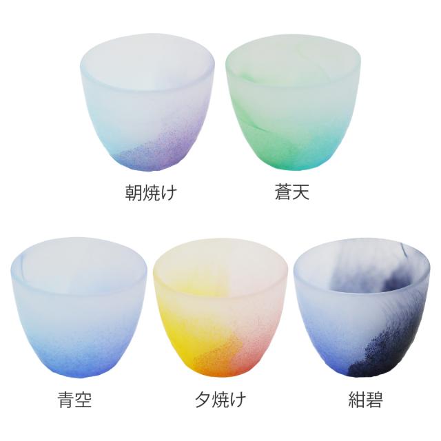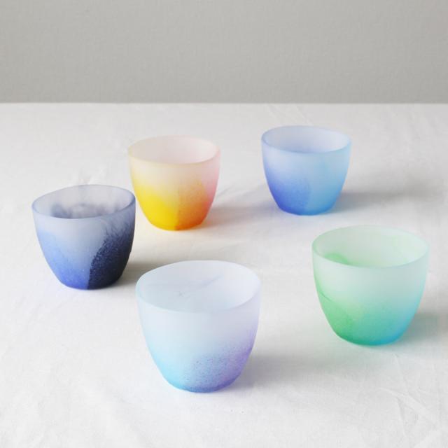 5種類の空の色をイメージしたガラスグラスです。光の当たり方で変わるさまざまな表情が食卓を彩ります。普段使いはもちろん、おもてなしの席でも活躍します。