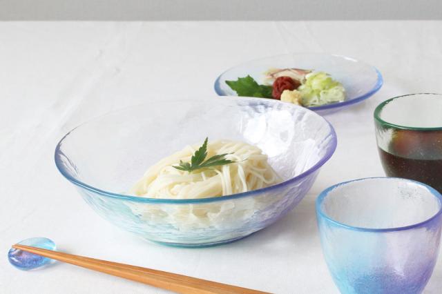 空の色をイメージしたソーダガラスの麺鉢