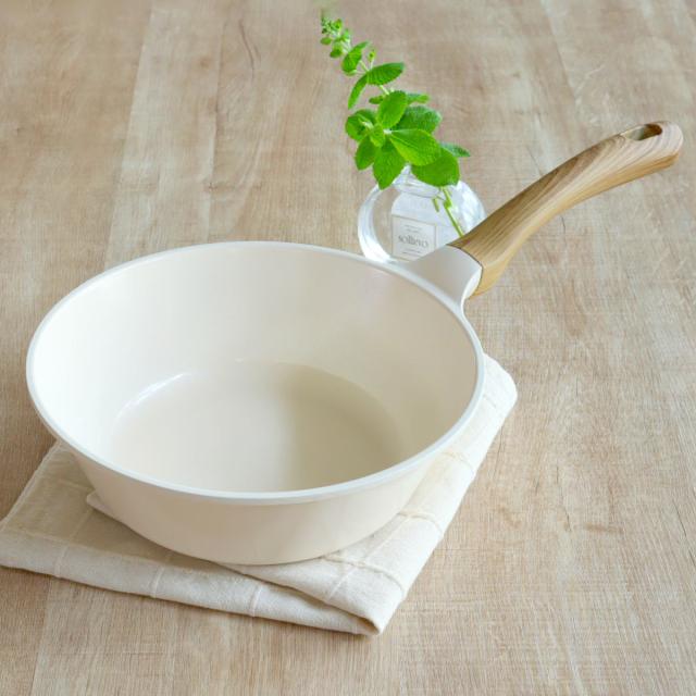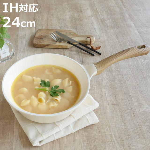 フライパン 24cm 深型 IH対応 HANAKO セラミック製 ウォックパン ( ガス火対応 セラミックフライパン いため鍋 ハナコ ホワイト 24センチ 炒め鍋 セラミックコーティング 木目調ハンドル こびりつきにくい おしゃれ 調理器具 白 )