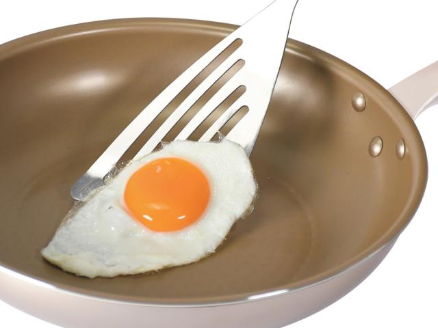 耐磨耗性のあるコーティングなので、金属ヘラをご使用いただけます。
