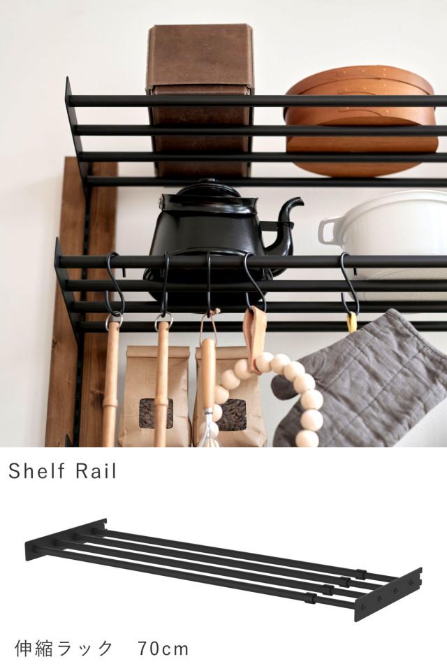 棚 伸縮ラック 70cm ラブリコ アイアン 壁面収納 ( LABRICO シェルフレール 収納 ラック 幅70〜110cm 可動棚 収納棚 DIY パーツ シェルフ 賃貸 壁 簡単取付 ディスプレイ 見せる収納 飾り棚 インテリア おしゃれ )
