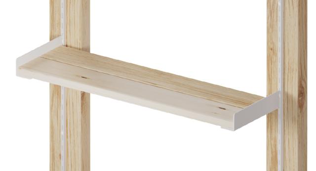 「棚受 トレイ型 19cm」は、1×4材を2枚乗せるだけで簡単に棚が作れます。レールの間隔は2.5cm刻みなので、収納物によって高さを変えることができ、収納したいものが変わっても自由に棚の高さを変えられます。