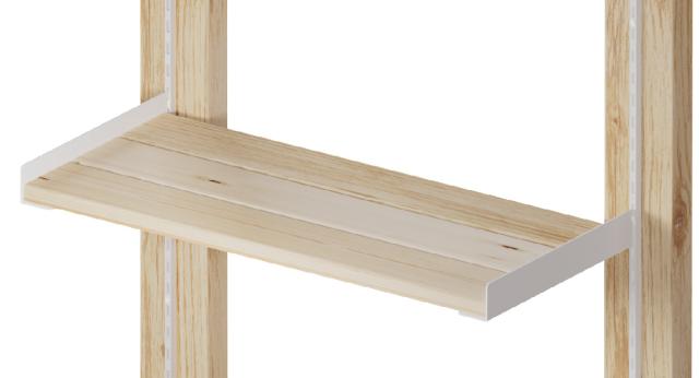 「棚受 トレイ型 28cm」は、1×4材を3枚乗せるだけで簡単に棚が作れます。レールの間隔は2.5cm刻みなので、収納物によって高さを変えることができ、収納したいものが変わっても自由に棚の高さを変えられます。