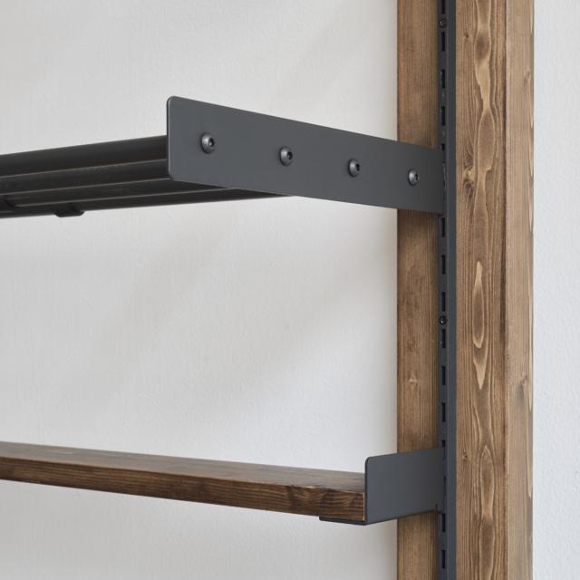 初心者でもクオリティの高いインテリア収納が作れるShelf Rail(シェルフレール)シリーズです。別売りのレール2本と棚受金具などを組み合わせることによって、お店のような可動式ディスプレイ収納が作れます。