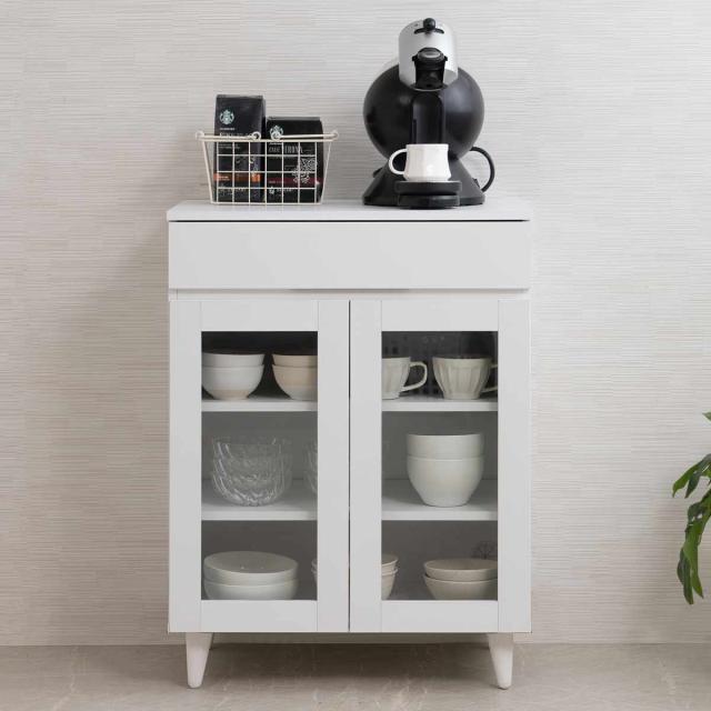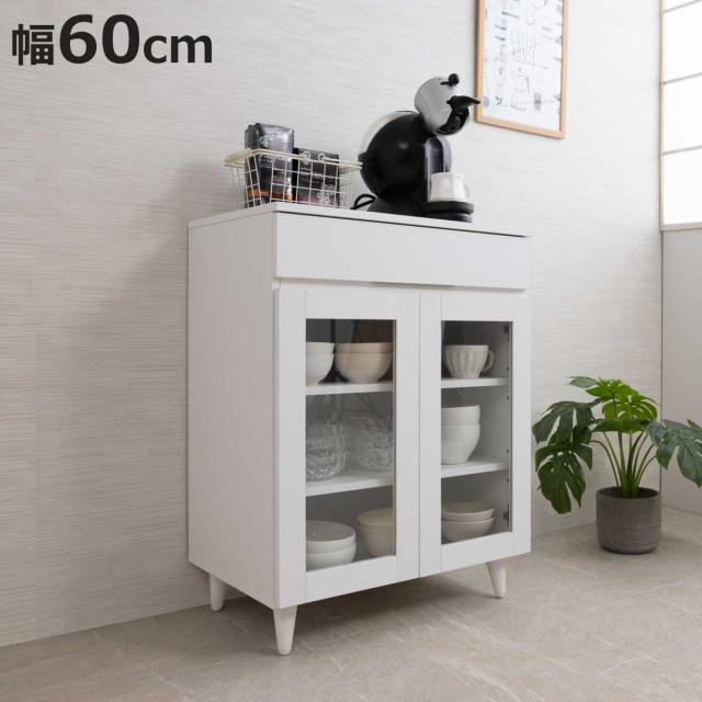 キッチンカウンター 幅60cm ガラス扉 ミニカップボード ホワイトリヴ ( Whiteliv カウンター 食器棚 カップボード 可動棚 組み合わせ キッチン収納 ホワイト 引き出し シンプル )
