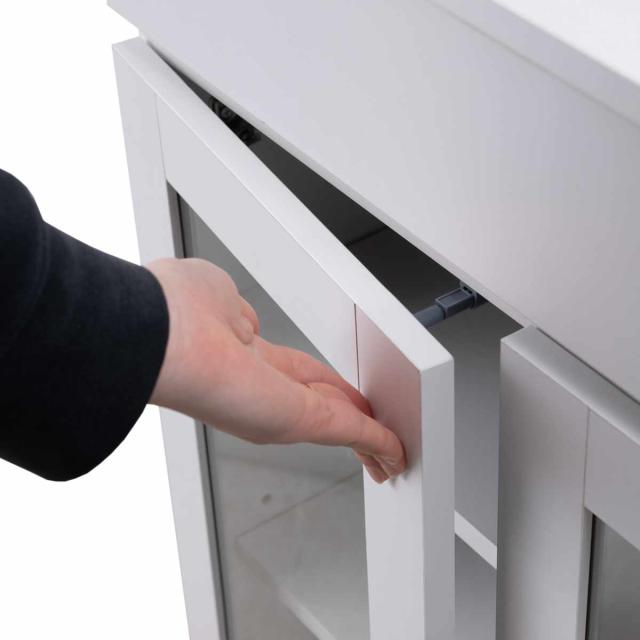 ガラス扉はワンタッチで開閉できるプッシュ式です。取っ手がないので、見た目がフラットでスッキリとしています。