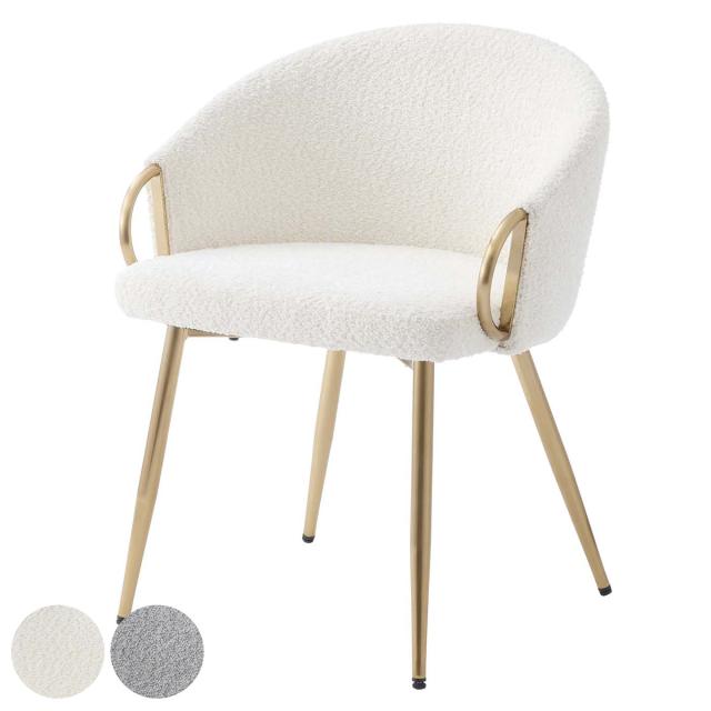 ダイニングチェア 座面高45cm アームチェア アンティークゴールド ( ブークレ生地 もこもこ ゴールド フレーム 食卓 椅子 チェア デスクチェア エレガント リビング ダイニング ファブリック 海外インテリア ホテルライク 高級感 )