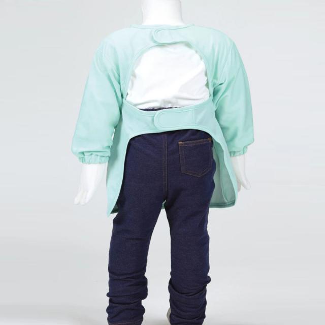 食事の時に汚れがちな袖口や素肌をガードする長袖タイプです。袖口にはゴム入りで、汚れを気にせず楽しく食べられます。