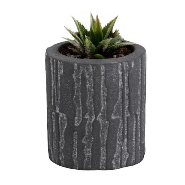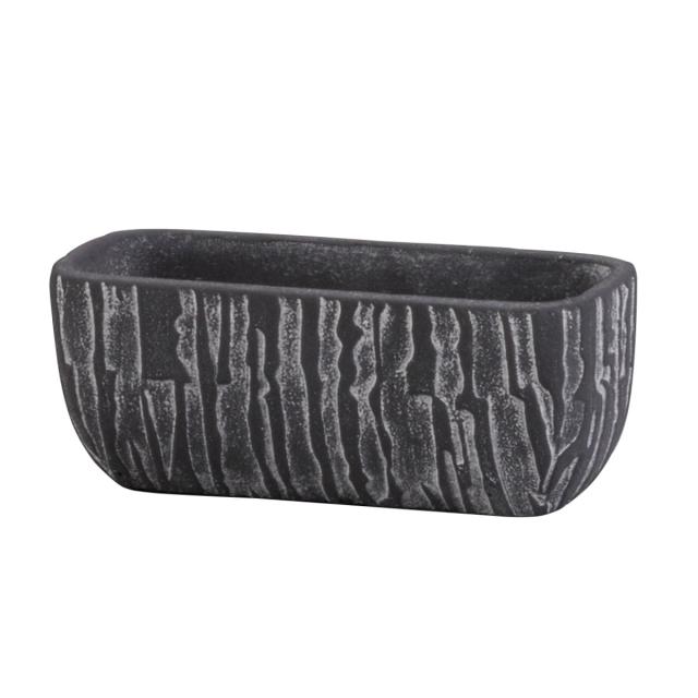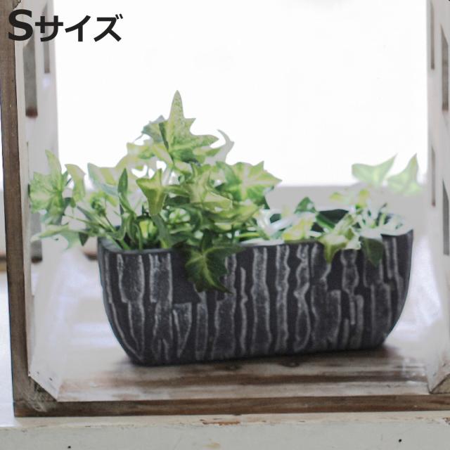 木の幹みたいに縦に粗く削ったような模様のセメントポットです。黒すぎず、おしゃれな色味と模様に陰影が高級感を演出してくれます。【Sサイズ】は幅18×奥行7cmで多肉植物の寄せ植えにおすすめのサイズです。