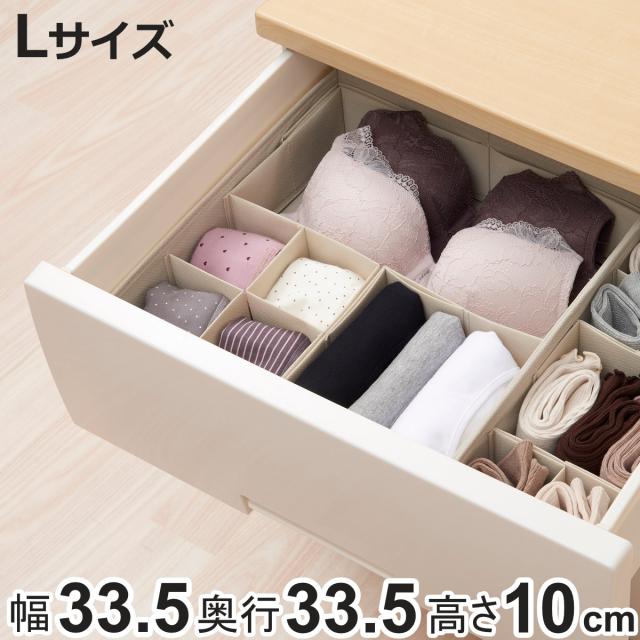 収納ボックス 仕切りが動く収納ボックス L 幅33.5×奥行33.5×高さ10cm ( 収納 引き出し 仕切りケース 収納ケース インナーケース 仕切りボックス 仕切り 引出し チェスト 整理 衣類収納 靴下 ハンカチ 小物 整頓ボックス )