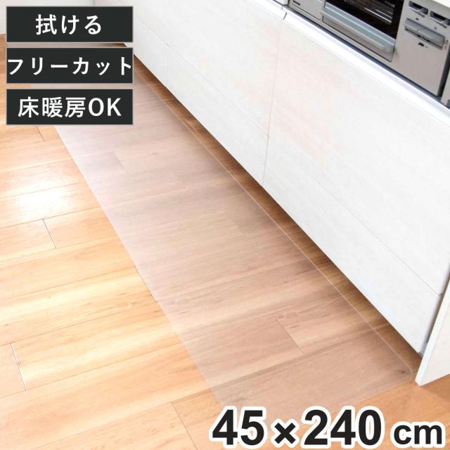 透明キッチンマット 45×180cm クリアマット フリーカット 拭ける ( 45cm 180cm 透明 キッチンマット キッチン マット 台所マット 拭けるキッチンマット PVC 洗濯不要 ズレない 傷防止 汚れ防止 カット 薄い 透ける 床暖OK )