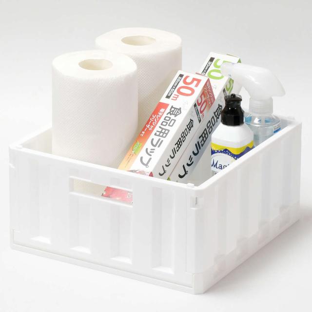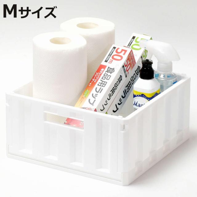 キッチン 小物入れ スキット 折りたたみ式コンテナ Mサイズ ( コンテナ 整理ボックス 収納ケース バスケット 折りたたみ コンパクト 日本製 コンテナボックス 積み重ね スタッキング シンク下 収納 ストック 食品 日用品 コスメ )