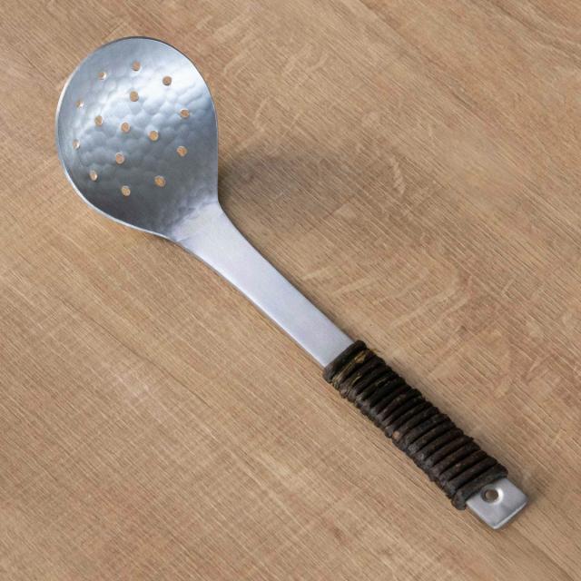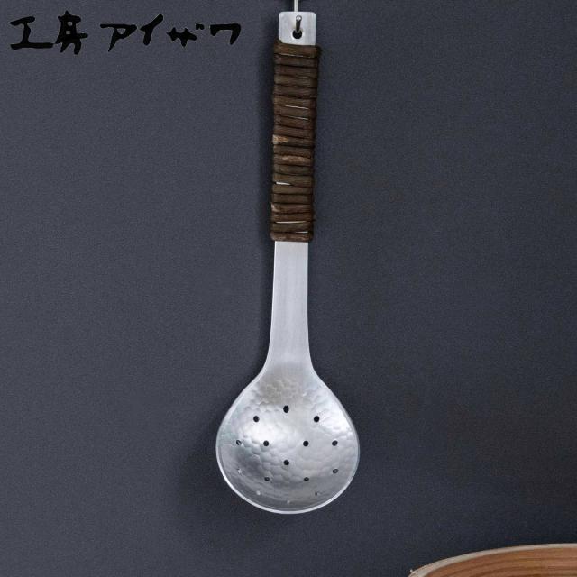 工房アイザワ アルミニウム アケビ巻穴明お玉 大 ( aizawa 穴あきお玉 穴杓子 レードル 穴あり 日本製 鎚目 サービングスプーン アイザワ 燕三条 美しい 高級感 レトロ 職人技 高品質 シンプル キッチンツール )