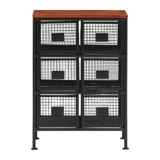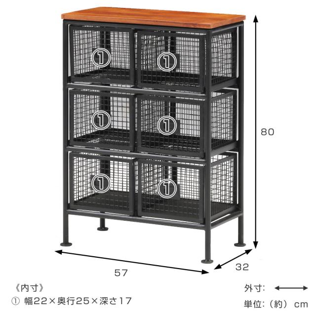 スチールメッシュ チェスト 幅57cm 引出し6杯 木天板 完成品 ( スチール 引き出し 6杯 木製天板 棚 ラック 飾り棚 カゴ メッシュ ブラック )