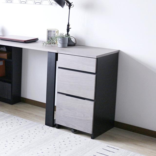 グレー×ブラックでモダンな雰囲気に仕上げたデスクワゴンです。シンプルで使いやすく机の上がスッキリと片付けられる、デザイン性と機能性を兼ね備えています。自分好みの快適なコーナースペースを演出できます。