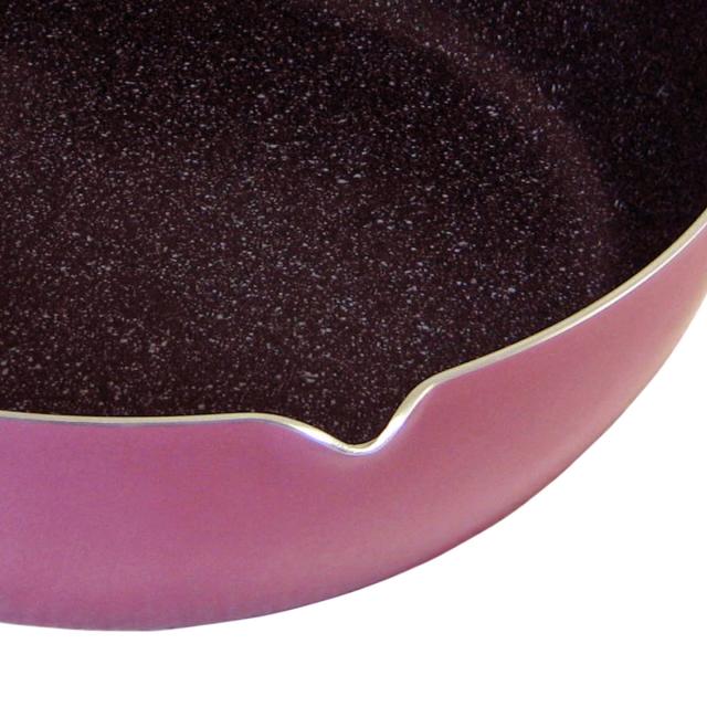 フライパンの両側に注ぎ口が付いているので、お湯を注いだり、汁気のある料理の盛り付けがぐんとラクになります。