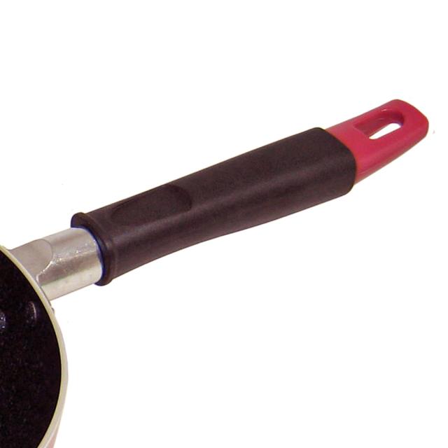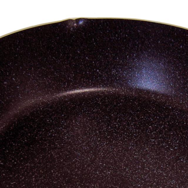 耐久性に優れ、長く使えます。離型性に優れたマーブル加工に加えて、硬質なダイヤモンド粒子を配合しているため、非常に高い耐久力を実現しました。そのため、食材がフライパンにくっつきにくく、金属製のヘラも安心して使用できます。