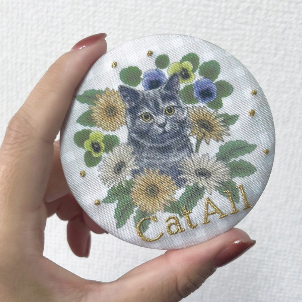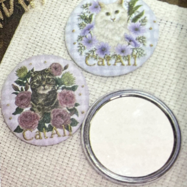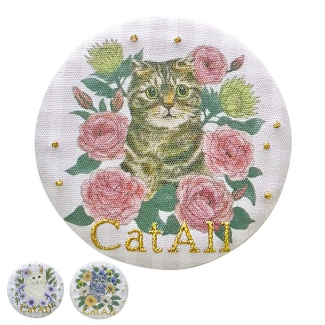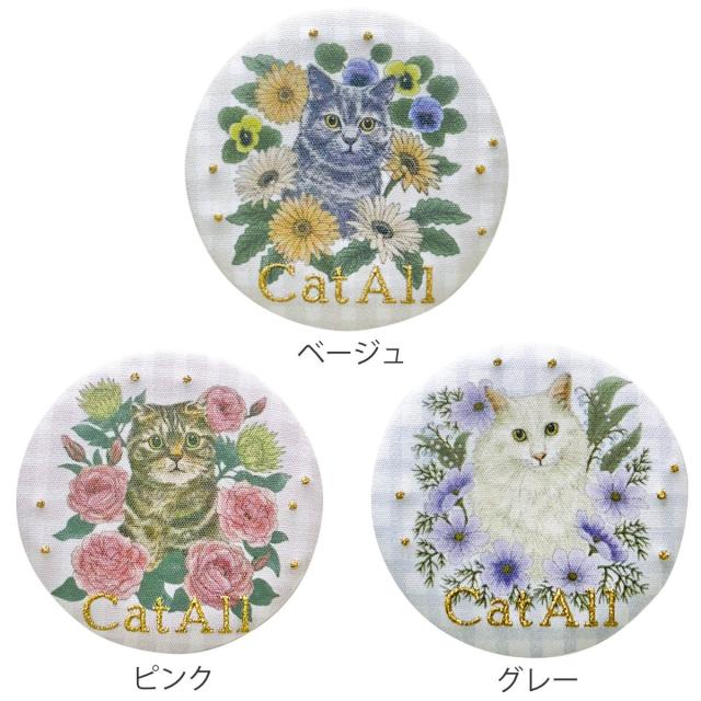ミラー キャットオール 刺繍 ポケットミラー ( 鏡 小さい 携帯 コンパクト ハンドミラー メイク直し お直し 猫 ねこ 動物 コンパクトミラー 丸型 小さめ 持ち運び かわいい おしゃれ 大人 プレゼント 雑貨 )