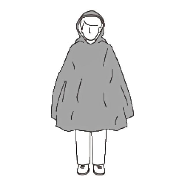 フード部分を除く、首から下の着丈は約100cmで右袖口から左袖口までの横幅は130cmあります。大人の上半身を腰あたりまですっぽり覆う大きさです。頭からサッとかぶれるプルオーバータイプタイプなので着脱も簡単です。