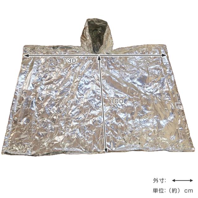 アルミポンチョ 緊急 簡易アルミポンチョ 静音タイプ 防災 ( アルミ ブランケット ポンチョ マント フード付き 服 防災用品 寒さ対策 保温 防風 防水 防寒 災害時 目隠し 薄い 軽量 レジャー 就寝時 避難所 アルミシート キャンプ )