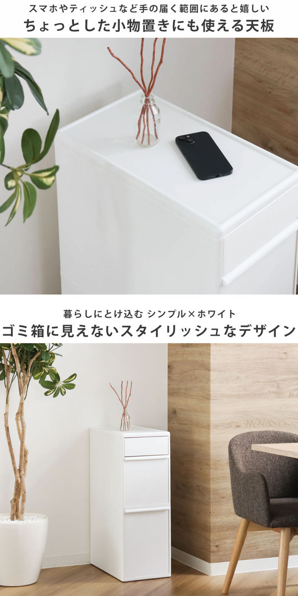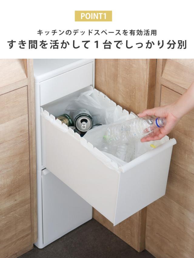 冷蔵庫や食器棚の横にあるちょっとした隙間にも収まるスリムなゴミ箱です。縦型のゴミ箱なので、キッチンのデッドスペースを有効活用して、1台でしっかり分別ができます。
