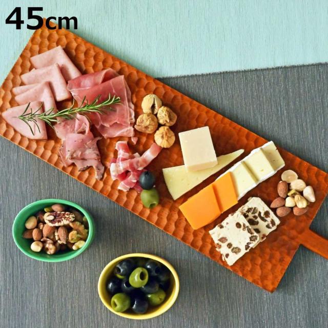 天然のラバーウッドを使用し、表面に立体的な彫りを施した長角ボードです。ホームパーティーやおもてなしのシーンにぴったりで、チーズやハム、フルーツなどを盛り付けるだけで食卓を華やかに演出します。ハンドル付きで持ち運びやすく、使わない時にはインテリアのように飾って楽しむこともできます。