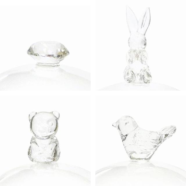 ガラスドームのトップにジュエルや動物などのモチーフが付いていて、可愛いアクセントになっています。