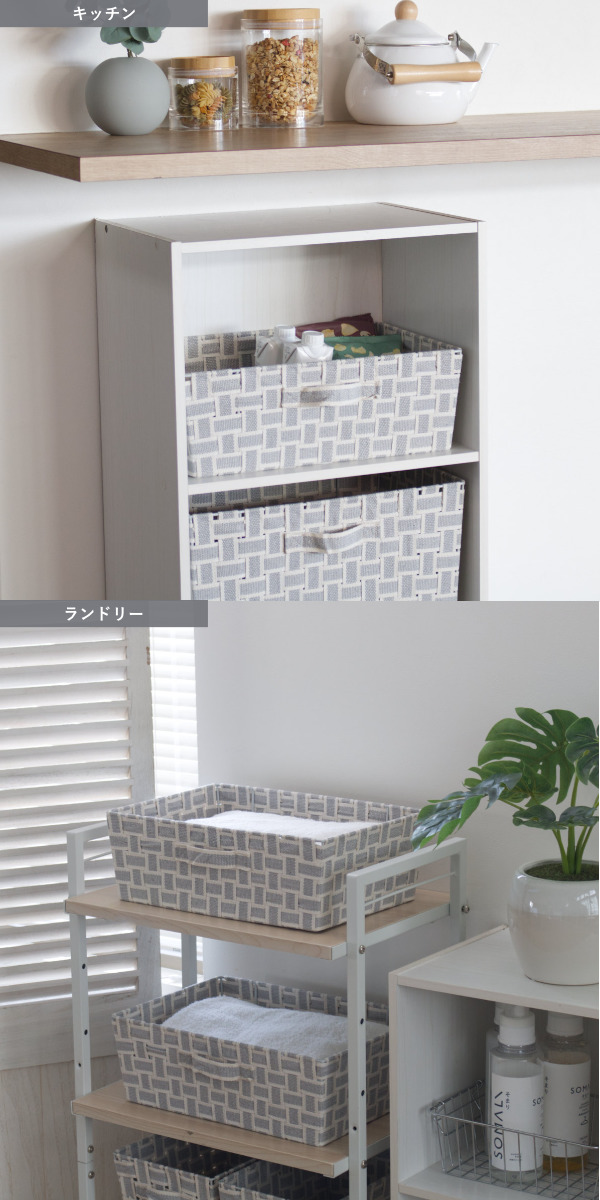 食品・日用品ストック入れや、キッチン、ランドリー、リビング、子ども部屋、玄関など、さまざまな場所の整理整頓に役立ちます。