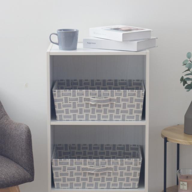 《 LH19369 LH3088 引き出しやすい 整理整頓 整理 整頓 片付け 収納用品 グッズ 用品 入れ物 箱 BOX ファブリック製 おもちゃ箱 おもちゃ入れ 玩具 おもちゃ 衣類収納 洋服収納 衣類 洋服 リビング収納 リビング キッチン キッチン収納 ランドリー 子供部屋 子ども部屋 キッズ収納 キッズ チェック 編み込み グレー モノトーン 浅型 ハーフサイズ 》