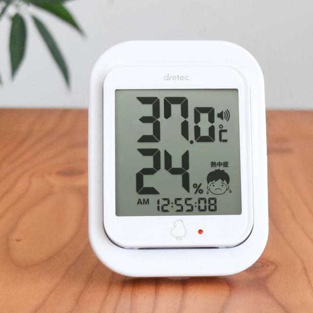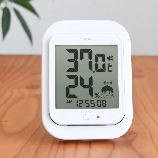 温湿度計 デジタル温湿度計 ルーモ アラーム音 ランプ 時計付き ドリテック ( dretec 温度計 湿度計 熱中症アラーム ランプ付き 電池式 置き掛け兼用 温度 湿度 測定器 温度湿度計 デジタル 壁掛け フック 見やすい 赤ちゃん )