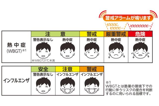 熱中症の危険度の目安をアラーム音とランプでお知らせ