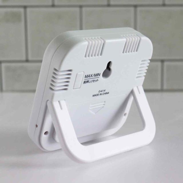 デスクやキッチンなどどんな場所でも使いやすい、無駄のないシンプルなデザインの温湿度計です。くっきり見えるデジタル表示で、少し離れた場所からでもしっかり確認できます。