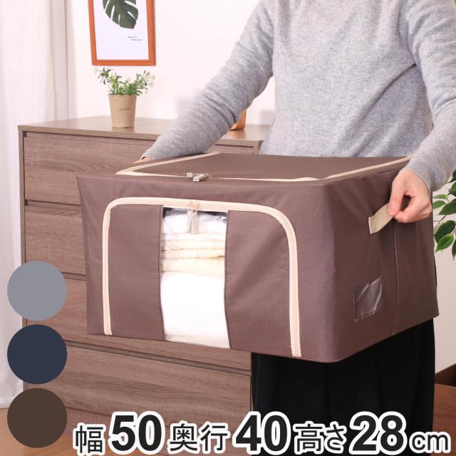 収納ボックス 55L 窓付き 積み重ね収納ボックス 布 幅50×奥行40×高さ28cm ( 前開き 衣類収納 スタッキング 収納ケース 衣類 洋服 収納 クローゼット収納 大容量 押入れ収納 衣装ケース おしゃれ 収納袋 持ち手付き )