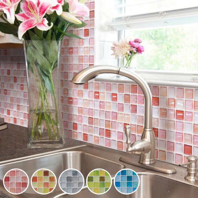 モザイクタイルシール 37.6×13.4cm ( 壁紙シール リメイクシート 壁用 のり付き 壁紙 立体 シール タイル タイルシール DIY お手軽 かわいい 防水 リフォーム シール壁紙 糊付き クロス 簡単 カット可能 ステッカー 耐熱 )