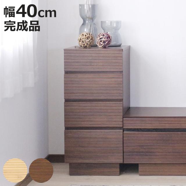 サイドチェスト 幅40cm 背面化粧 天然木 ( チェスト 4段 棚 ラック 引き出し 収納 フロート風 リビングボード フルオープンレール ナチュラル ウォールナット )