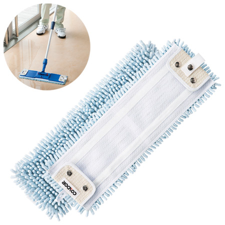 汚れをかき取り、繊維の中に取り込むシボレールモップのスペアです。超吸水繊維を使用することにより、水拭き後の床面に余分な水が残らず、乾燥時間も短縮できます。