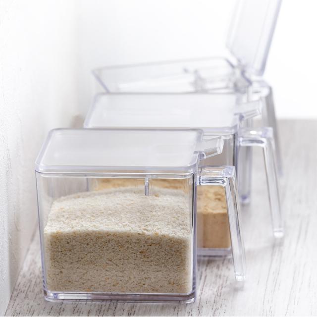 良く使う砂糖、塩、小麦粉、片栗粉などを入れておくのに便利な650mlの調味料ストッカーです。シンプルなデザインなので、キッチン周りをスタイリッシュな雰囲気に整えてくれます。